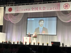 基調講演では、福井県出身のアパホテル(株)取締役社長 元谷芙美子さんが、幼少期からホテル経営をするまでの道のりや、運は自分から掴みに行くといった考え方について講演されました。とてもチャーミングな方で、会場も盛り上がり、あっという間の時間でした。